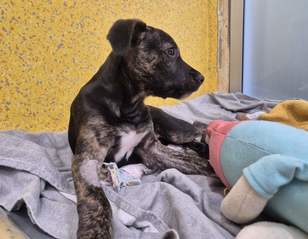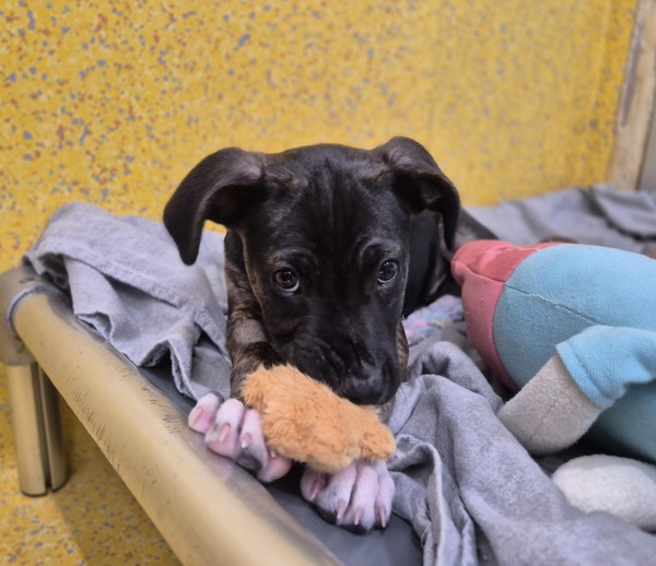 At just a few months old, Ed is the full package of typical puppy behavior - curious, playful, clumsy, and full of energy. He's the kind of pup who will chase his own tail, zoom around the room, then crash into your lap for a cuddle. Chew toys? Yes, please. He's still learning what's a toy and what's not (classic Ed!), but he's eager to learn and very food-motivated.