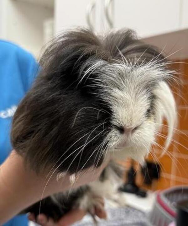 While he may look like royalty, Sir Mops-A-Lot is down-to-earth and enjoys the simple pleasures of guinea pig life-fresh hay, tasty veggies, and cozy hideouts. He will need regular grooming to keep his luxurious locks in top shape, so he's best suited to an adopter who's comfortable with or willing to learn about long-haired guinea pig care.