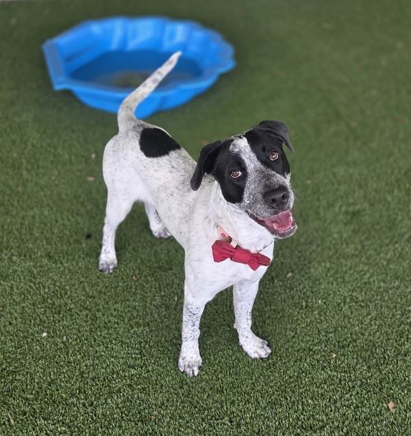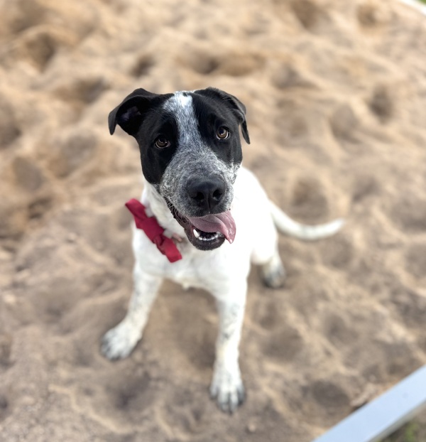 She travels well in the car and is learning fetch-she prefers the ball and is still figuring out squeaky toys. Lady enjoys sand pits, chasing toys, and yard play. She's dog-social but can be vocal and excitable when meeting new friends, so a calm, tolerant older dog would be ideal. A meet-and-greet is required at adoption. She's still working on lead manners but does better after exercise. Lady will need time to settle into her new home, so someone who's around often-or a dog friend-will help her feel secure.