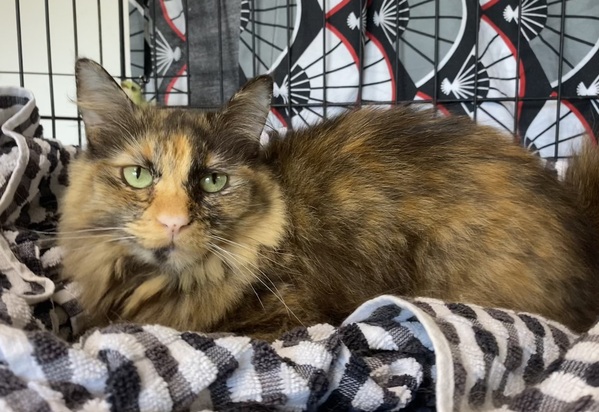Gwen is a stunning Chocolate Torti with a big, sassy personality that will keep you entertained every day. She's confident, independent, and knows exactly what she wants-preferably four paws on the ground rather than being carried around.