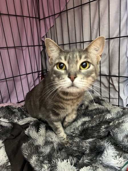 Meet Bella, she's a shy but gorgeous kitty that'll need a little time to adjust when you bring her home. We suggest starting her in a small 'launch' room where she can have time to settle before exploring the rest of the house. She'll be a little intimidated by large open spaces. Scratch posts/cat trees, hides (like cardboard boxes and cat igloos), access to shelves/ dressers will all provide her with ample safe spaces, both high and low, all around the house. We recommend a patient and understanding adopter who can recognize that Bella will be timid going into a new environment and may take a little while to settle in before she shows her true self! Ideally teens or older children rather than littlies in the home as the older children will be better equipped to respond to cat body language and know ehn to give them space. She's a rather social kitty, so we feel that Bella would be okay with another cat friend, while being mindful to give them both space to get to know each other. And if there's a calm social dog in the home then monitoring of interactions is recommended to ensure they'll get along.