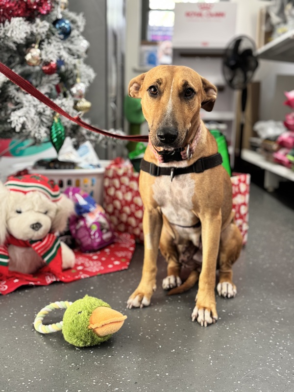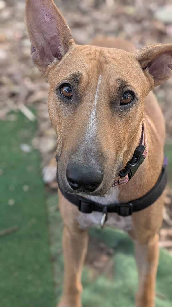 Hey there! My name is Sissy! I was brought into care with my 4 puppies after we weren't being treated the best. I came in a bit worse for wear as I was giving everything I had to my babies. BUT I am now done with motherhood and ready for my new home! I am a bull terrier x kelpie and gosh I am the epitome of both breeds! I am stubborn as a mule and a high energy girly! I am smart and VERY food motivated so I am easy to train, when I want hehe! I can be nervous of new people at first but when you earn my trust, well! I will love you forever! I am a loyal hound and I will be yours forever if you choose me. I do want to be an only dog, I can socialise with others but prefer my space and not sharing my humans. Speaking of humans, any kids in the home need to be 10+ as I am very bouncy and still learning that I do not need to crawl into your skin for affection. I love love toys and my favourite game is tug! Will you play with me? Come to the shelter to meet me today!