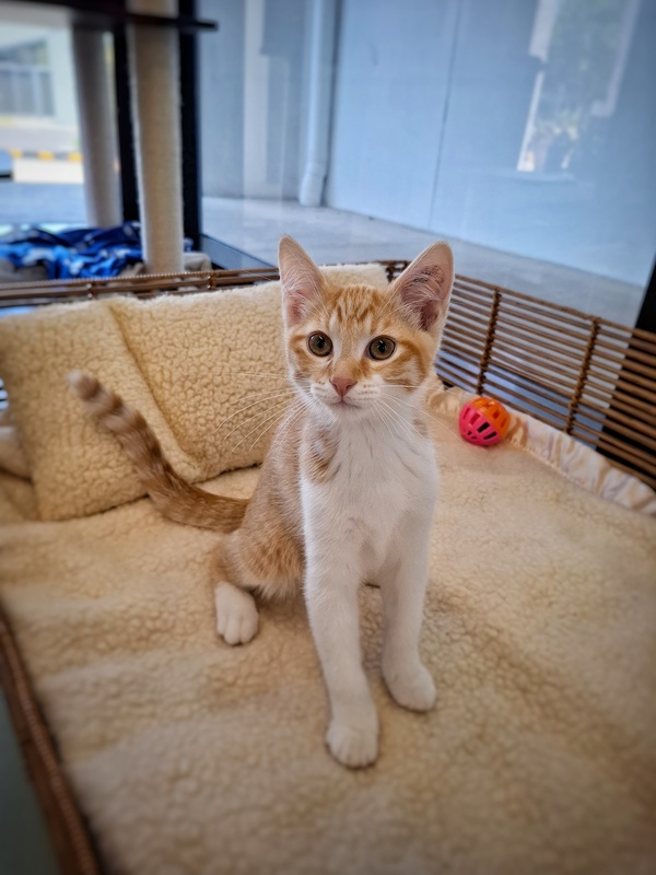 Hello! I'm Ross, a soft and snuggly ginger‑and‑white baby boy with a gentle heart and a playful spirit. Since I'm still so young, every day feels exciting and full of new discoveries. I love anything that moves - little toys and fluffy things - and I'm always ready for a game or a curious wander around my space.