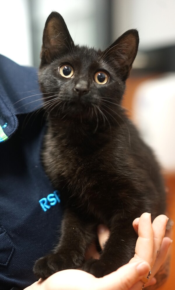 Murphy is a charming little black kitten with a big personality wrapped up in a sleek, shiny coat. Curious, confident, and endlessly playful, he's the first to investigate a new toy and the last to run out of energy during playtime.