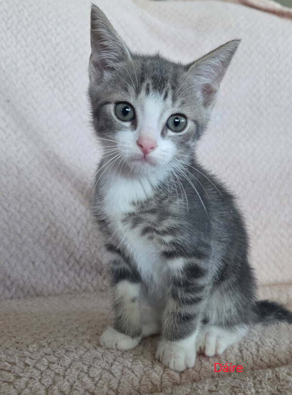 Hi! My name is Dáire (pronounced DAH-rah), and I'm a little grey tabby boy with a very big personality.