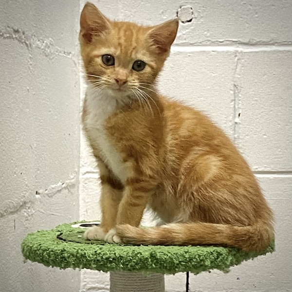 My name is Henry. I came to the Shelter after being found in a backyard, all on my own, having being separated from my mother and any siblings that I had. Only 4 weeks old, I was settled in with another kitten who had had a similar experience to mine. This was Gizmo and he became a wonderful friend with us playing lots of games and snuggling together. It's now time for me to find my own forever home. I'm a very handsome boy with a ginger and white tabby coat and I'm very healthy after a tough start. Whilst I'm still a little shy, it's not long before my purr motor starts up and I'm ready to go! Please read on for how to care for me:-
