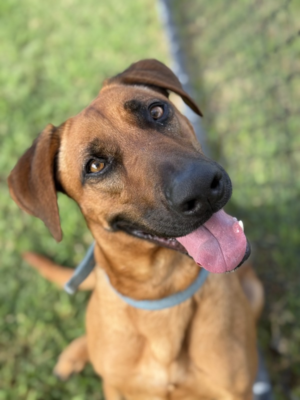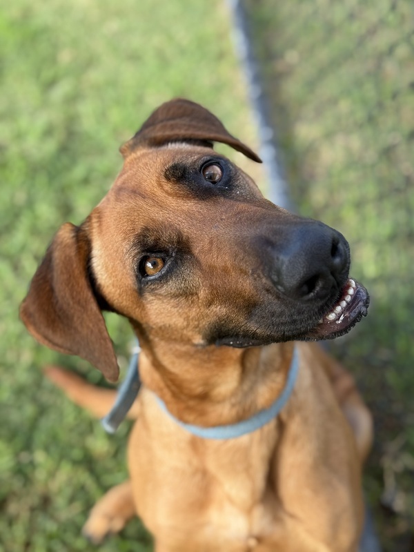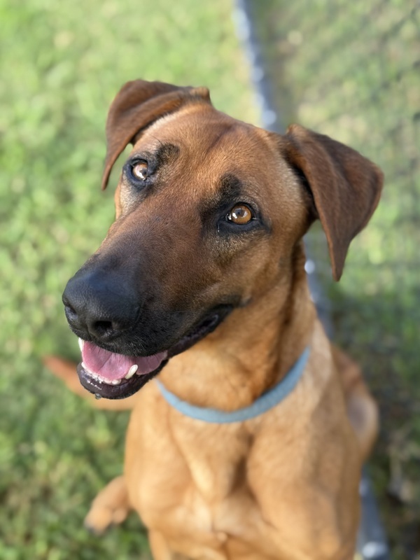 Shelby is a sweet, gentle girl with a big heart who is looking for a calm and loving home to call her own. This beautiful Rhodesian Ridgeback x Irish Wolfhound mix enjoys the company of people she trusts and will happily soak up attention once she feels comfortable.