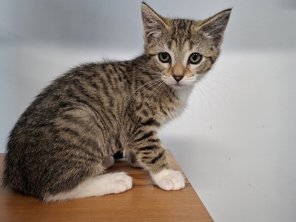 This playful miss adores having fun with toys and chasing around with her siblings. Whether she's pouncing, zooming, or inventing new games on the fly, Bee brings a burst of happy energy to every room she enters.
