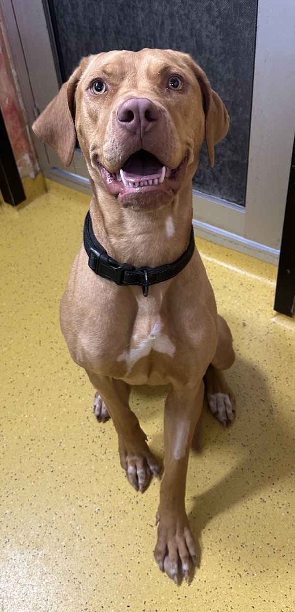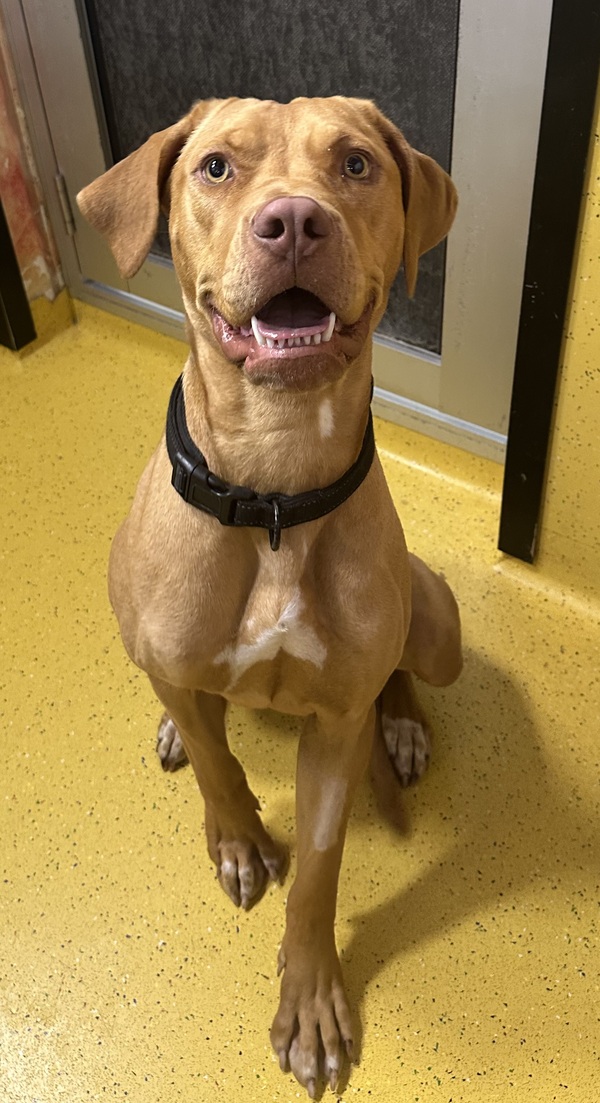 She's very friendly and social with other dogs, though she can struggle to read social cues and must meet other dogs a time of adoption. She's a charming, gentle soul looking for a family who will enjoy her silly, loving personality.