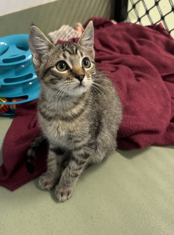 Puddles is the kind of kitten who instantly brightens every room he enters. With his playful nature and friendly personality, he quickly became a favourite at the shelter. Whether he's chasing wand toys, batting around bouncy balls, or doing excited little laps during his zoomie moments, Puddles makes every day feel joyful.