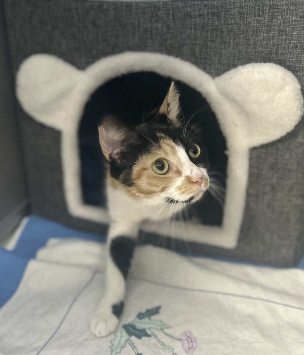 To help her settle into her new home, Pixie will do best with a launch room for a few days-somewhere cozy where she can adjust at her own pace. She'll also appreciate plenty of hiding spots where she can retreat if she's feeling overwhelmed. These little comforts go a long way in helping her feel secure and confident.