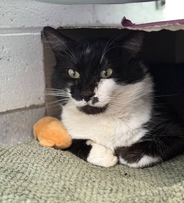 Meet our resident shy guy, Jasper! Jasper is a gentle black and white sweetheart who's hoping to find a calm, quiet home where he can truly blossom. Though shy at first, this soft‑hearted boy rewards patience with tender affection and a loving personality. Jasper will thrive with someone experienced in caring for timid cats and who can give him a few peaceful days to settle into his new home. He'd do best with adults or older teens who understand his sensitive nature, and he may even enjoy living with other friendly cats given slow, thoughtful introductions. Jasper appreciates cozy hideaways, like boxes or cat towers, where he can retreat when the world feels a bit overwhelming, and he's most comfortable keeping all four paws on the ground. With just a little bit of kindness, time, and understanding, Jasper will show you just how sweet he truly is :)