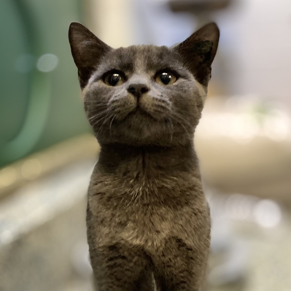Waffles is a new kitty at our Shelter. She, sadly, arrived as an unwanted kitten along with her two sisters, Snickers and Candy. We want her to have a loving home that wants her. Waffles will settle in quickly once you provide her with stability and love. We can already see that she's yearning for affection - Waffles will sit at her door just waiting for you to come along. Waffles has a gentle, kind nature. She is blessed with a thick, grey coat with dark gold eyes. Please read Waffles's care guide:-
