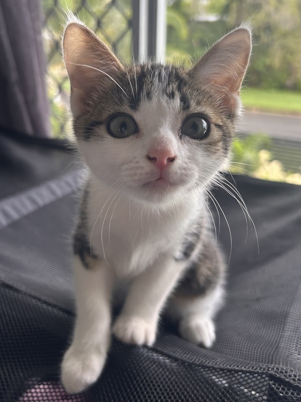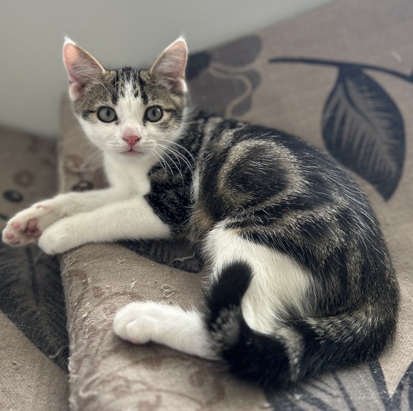 Hi, I'm Wobble! I'm a bit shy but give me a little time and I'll be zooming around, chasing toys and enjoying pats in no time! I love cuddling with my cat friends and I'm always up for lots of playing with them! I would really benefit from going to a home with another kitten or playful cat who will show me the ropes! They really help me build my confidence! I warm up to people quickly through play, I really enjoy toys! Once I'm comfortable I love pats and enjoy curling up for a nap near you! I dream of a home where I can share all my love and playful antics! I just need someone who will be patient and understanding with me while I come out of my shell! So if you're looking for a sweet gentle boy who just needs lots of loving then I'm your guy!!