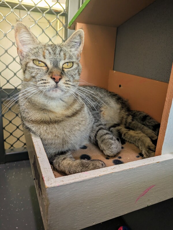 Meow there! My name is Schnookums, they call me that because I am such a smoochy girl. I am a mellow lady, all I need in life is a lap to lay on and a hand to scratch my chin. I am housed with another cat and have not shown any aggression towards the cats in the cat room, so staff are confident that with proper introduction I will be able to live with another cat in my new home. Nothing much phases me so staff think I can go to a home with children as long as they are cat savvy. So are you after a sweet and cuddly gal? I might be the one for you!