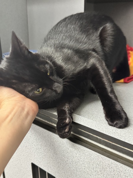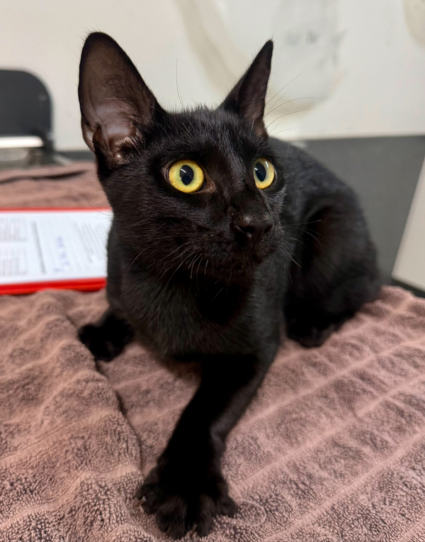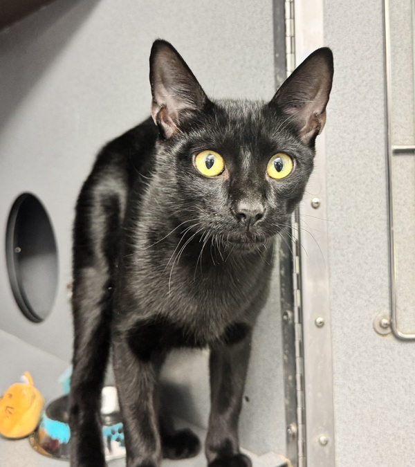 Meow meow! Are you looking for the next Slinky Malinki? Then I am your man! Lithe, shiny coat, affectionate nature, what more could you want? I am still young and adaptable to new things, so most home environments would be suitable for me! Cat savvy kids? Yes. Another cat? Probably! As long as they are nice. Quiet to moderately busy home? Sure! Dogs? No clue! But if they are good with cats and we are introduced slowly I should be fine. So if you are looking for your 'familiar' I am ready to be that for you!