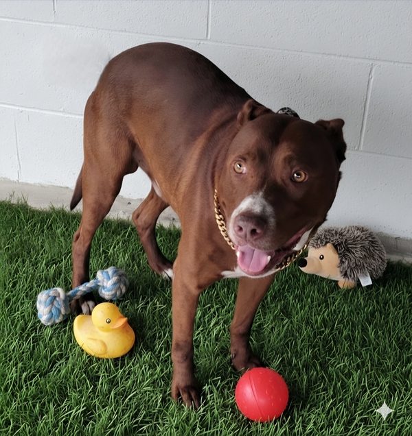 Meet Baylor, the epitome of a happy-go-lucky family dog. His days are filled with playful antics and clever tricks that keep everyone entertained. Baylor's sweet nature makes him a wonderful companion, always ready for a cuddle or a game. His intelligence shines through in how quickly he learns new commands and solves puzzles. Loyal to the core, Baylor is looking for a forever home where his playful spirit and loving heart can truly flourish. Adopt Baylor today and fill your home with joy and laughter!