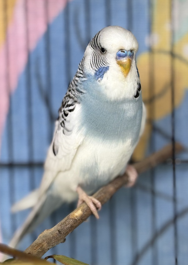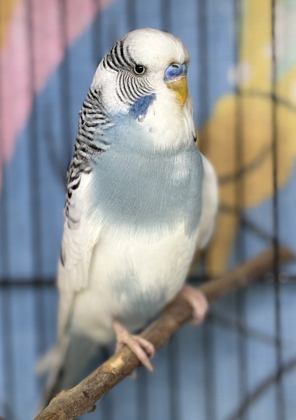 Meet Clive, a gorgeous blue‑and‑white budgie with the sweetest, gentlest nature! 💙