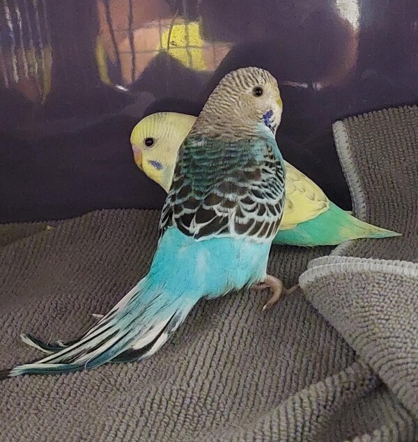 Mental stimulation is essential for happy budgies. Sky and Sunshine will enjoy a rotating selection of toys, natural branch perches, and foraging activities to encourage exploration and prevent boredom.