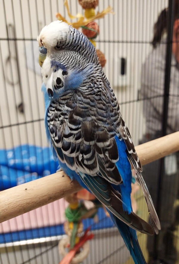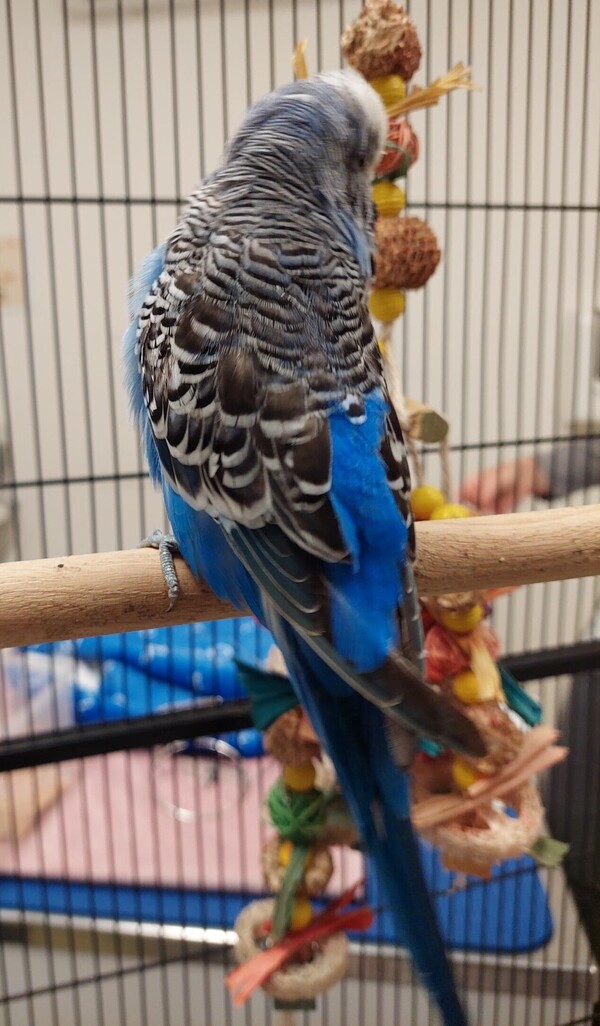 Mavi is a sweet, gentle budgie with some hand-taming already established. His name means "Blue" in Turkish, which suits his calm and charming nature. Mavi would make a lovely companion for adopters who enjoy interacting with their birds while also respecting their need for space.
