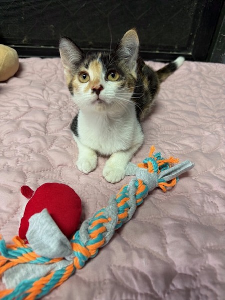Molly is an adorable kitten with a big personality and an even bigger love for playtime! She's full of energy, curiosity, and kitten mischief - whether she's chasing toys, exploring new spaces, or pouncing on anything that wiggles, Molly always keeps life fun.